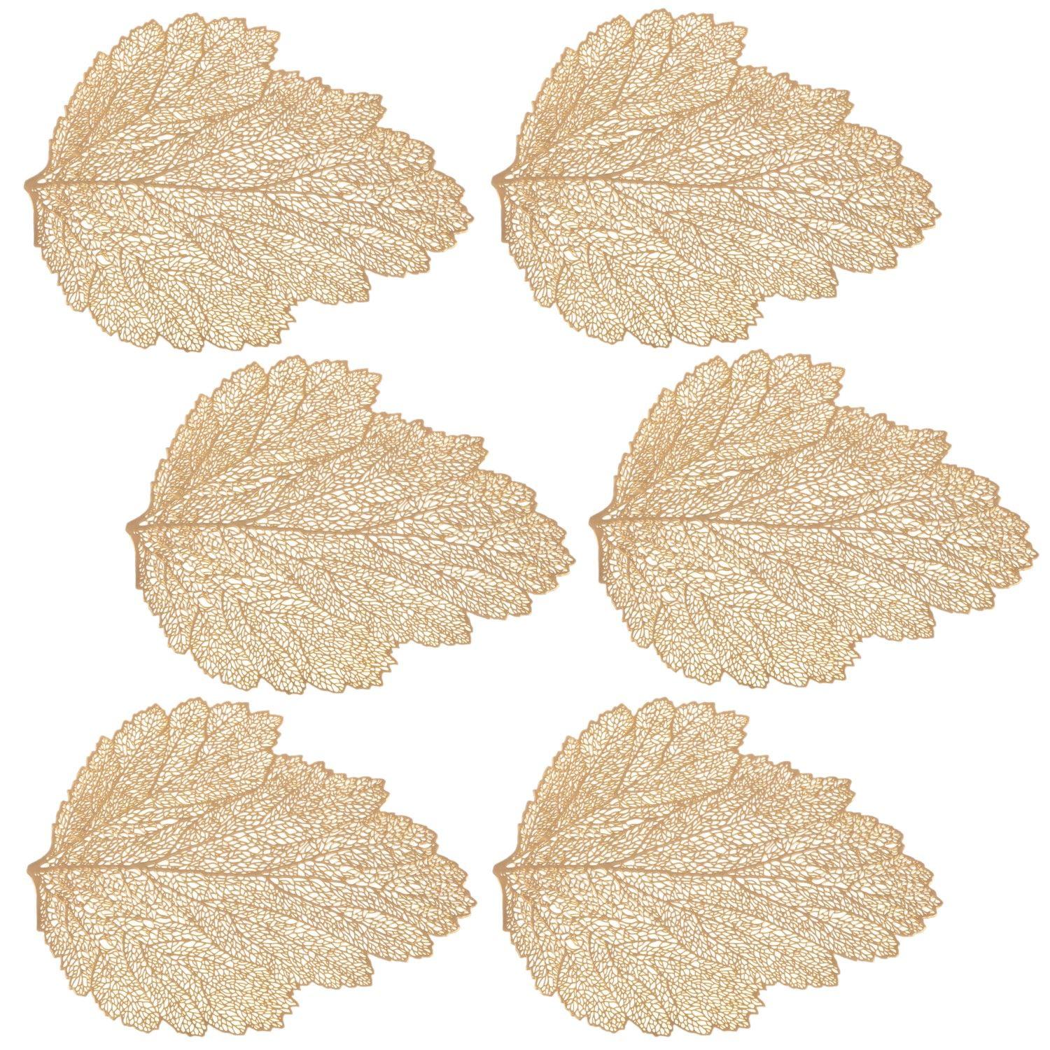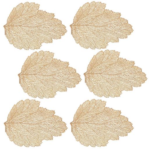 Lot de 6 sets de table motif feuille - 47 x 36 cm - Doré
