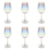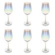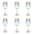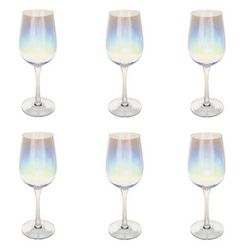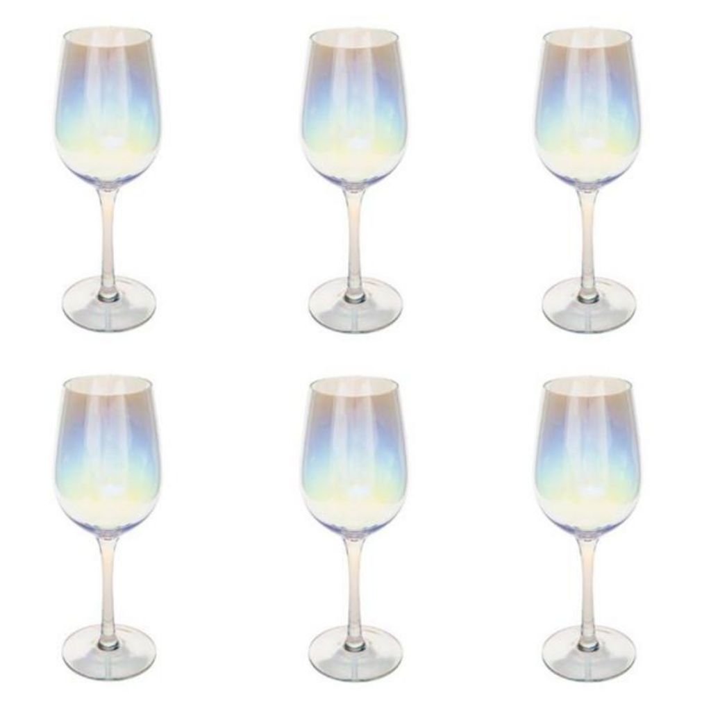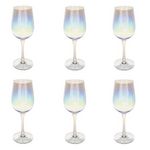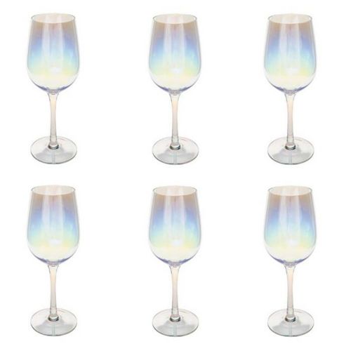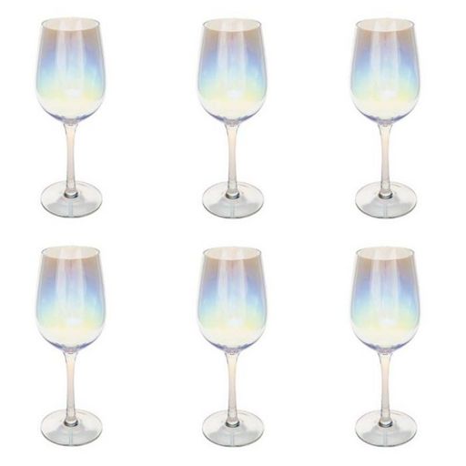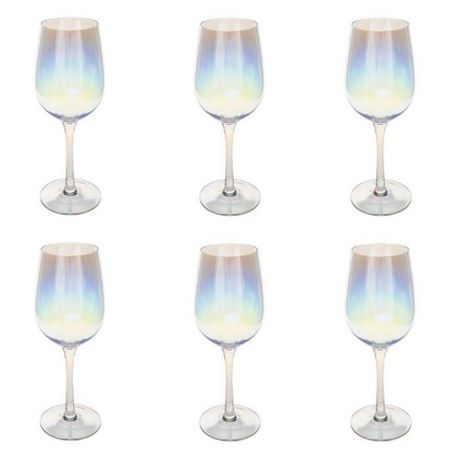 Informations Techniques : Dimensions : D. 8,44 x H. 23 cm Matière : Verre Spécificités : Design & Charmant Lot de 6 verres à vin Effet irisé Contenance 38cl Lavage à la main Facile d'utilisation & d'entretien Poids : 0,167 kg Couleur : Transparent
