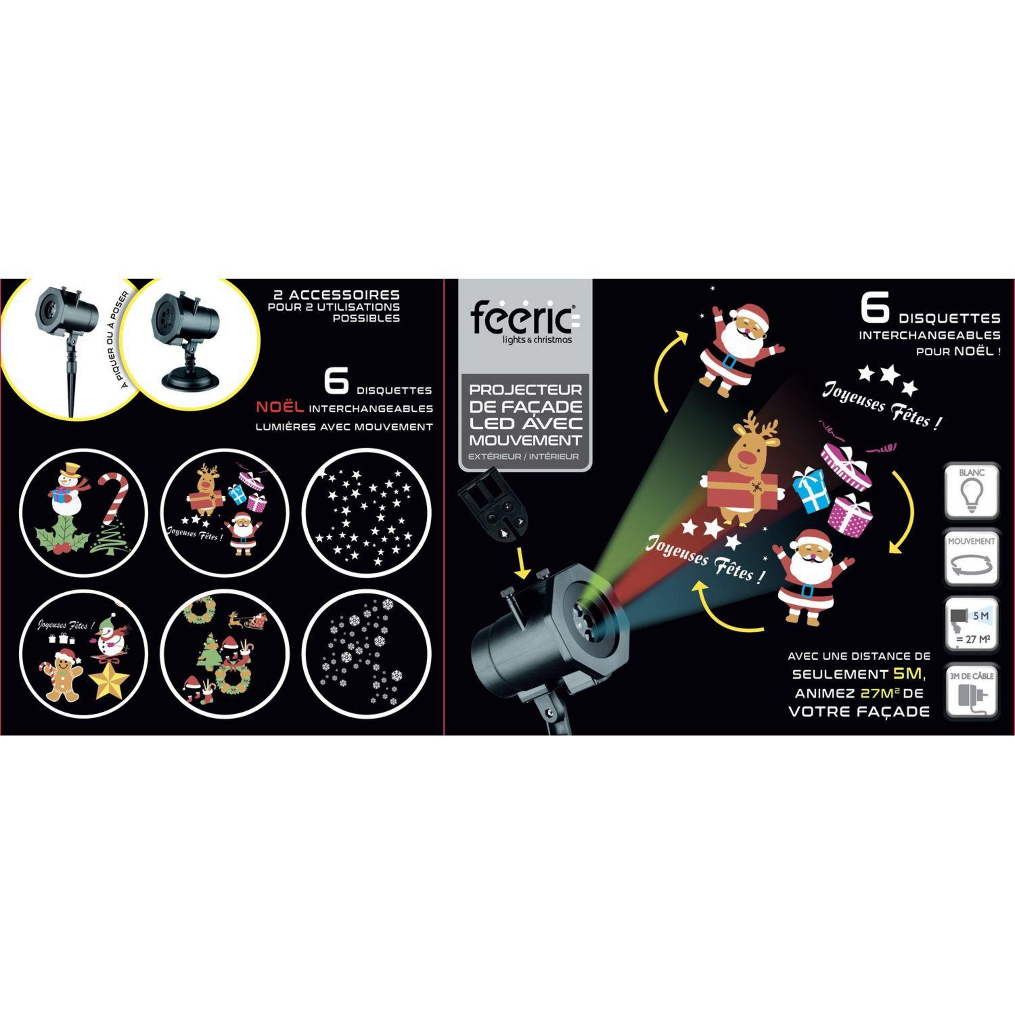 En savoir +Projecteur LED avec 6 films interchangeables inclus au décor de Noël.