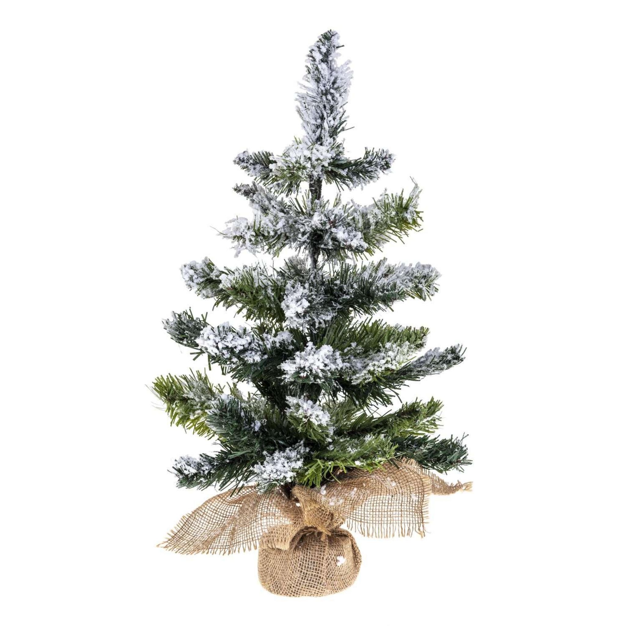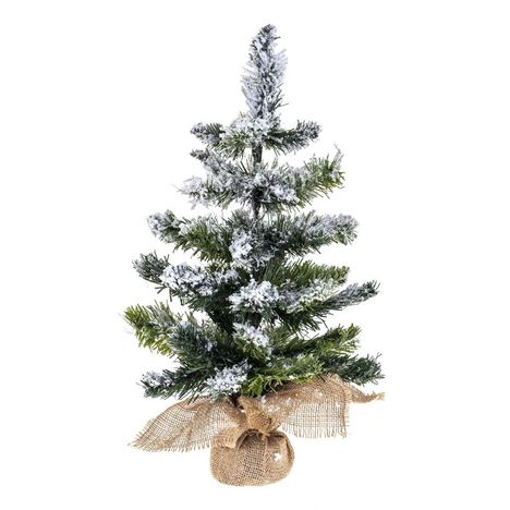 Sapin de Noël artificiel Blooming effet enneigé avec pot couvert de jute - H. 50 cm - Vert et blanc