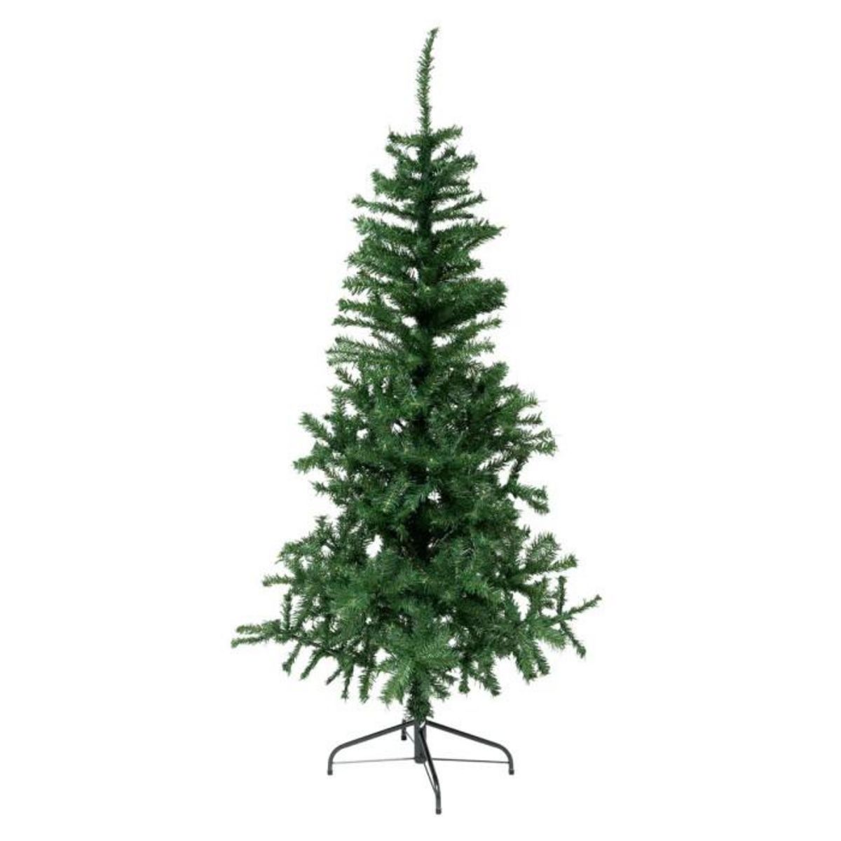 Informations Techniques : Dimensions : D. 109 x H. 180 cm Matières : PVC, Acier & Polyester Spécificités : Sapin de Noël artificiel Pied en métal Nombre de branches : 32 Nombre de brins : 650 Dépliage branche : Manuel Nombre de parties : 3 A monter soi-même Poids : 3,2 kg Couleur : Vert