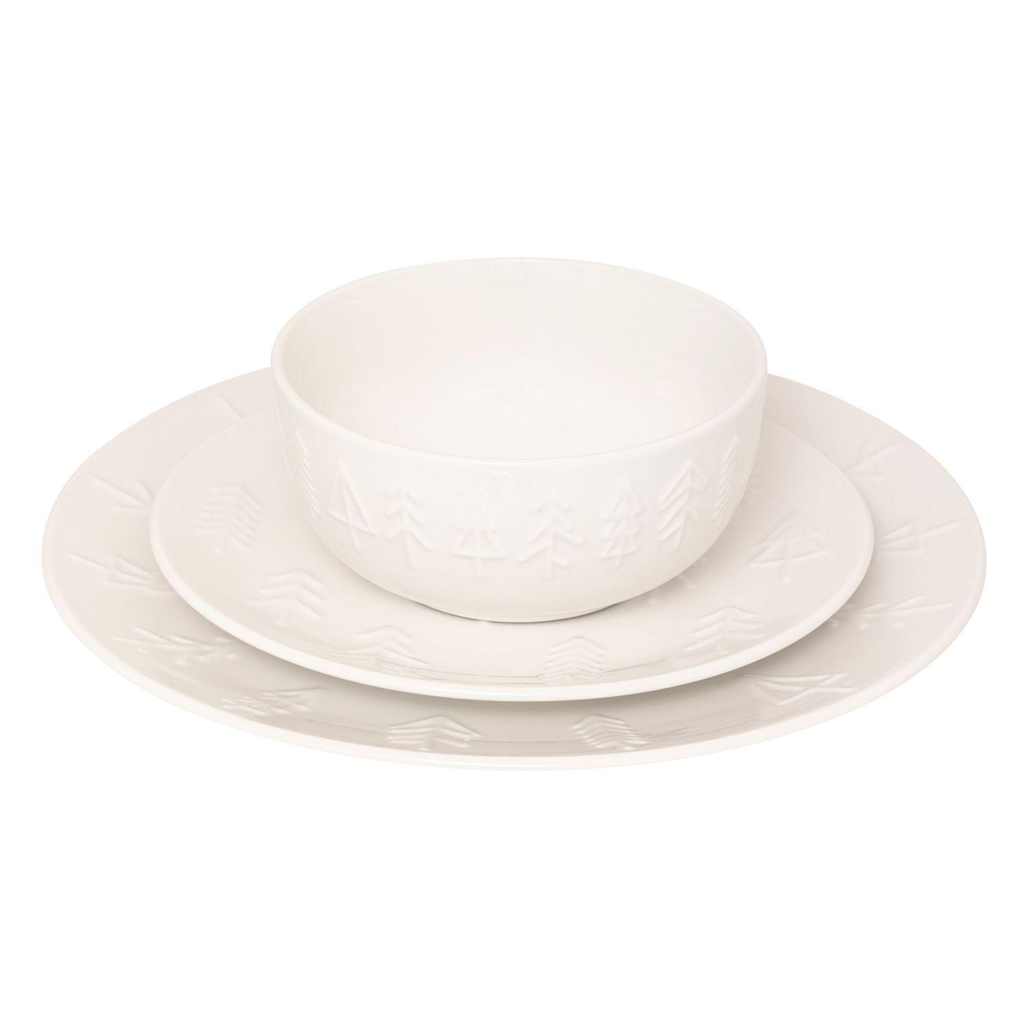Apportez une touche de douceur hivernale à vos repas avec ce service de vaisselle 18 pièces décoré de jolis sapins en relief. En porcelaine blanche, il associe simplicité et élégance pour habiller votre table de fêtes comme vos repas du quotidien. Son design épuré est relevé par les motifs sapins subtilement embossés, qui rappellent la magie de la montagne et des soirées au coin du feu. À la fois esthétique et fonctionnel, ce service passe aisément du repas familial aux grandes occasions. Composé de 6 assiettes plates, 6 assiettes à dessert et 6 bols, il vous permet de dresser une table harmonieuse pour 6 convives. Solide et facile d'entretien, il est compatible avec le lave-vaisselle et le micro-ondes.