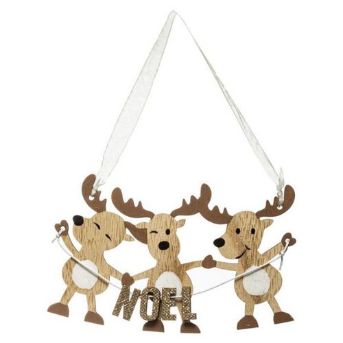 Informations Techniques : Dimensions : L. 15 x l. 1 x H. 17 cm Matières : Bois & Contreplaqué Spécificités : Pratique & Utile Sujet de Noël A Suspendre 3 Rennes Inscription Noël Poids : 0,015 kg Couleur : Naturel