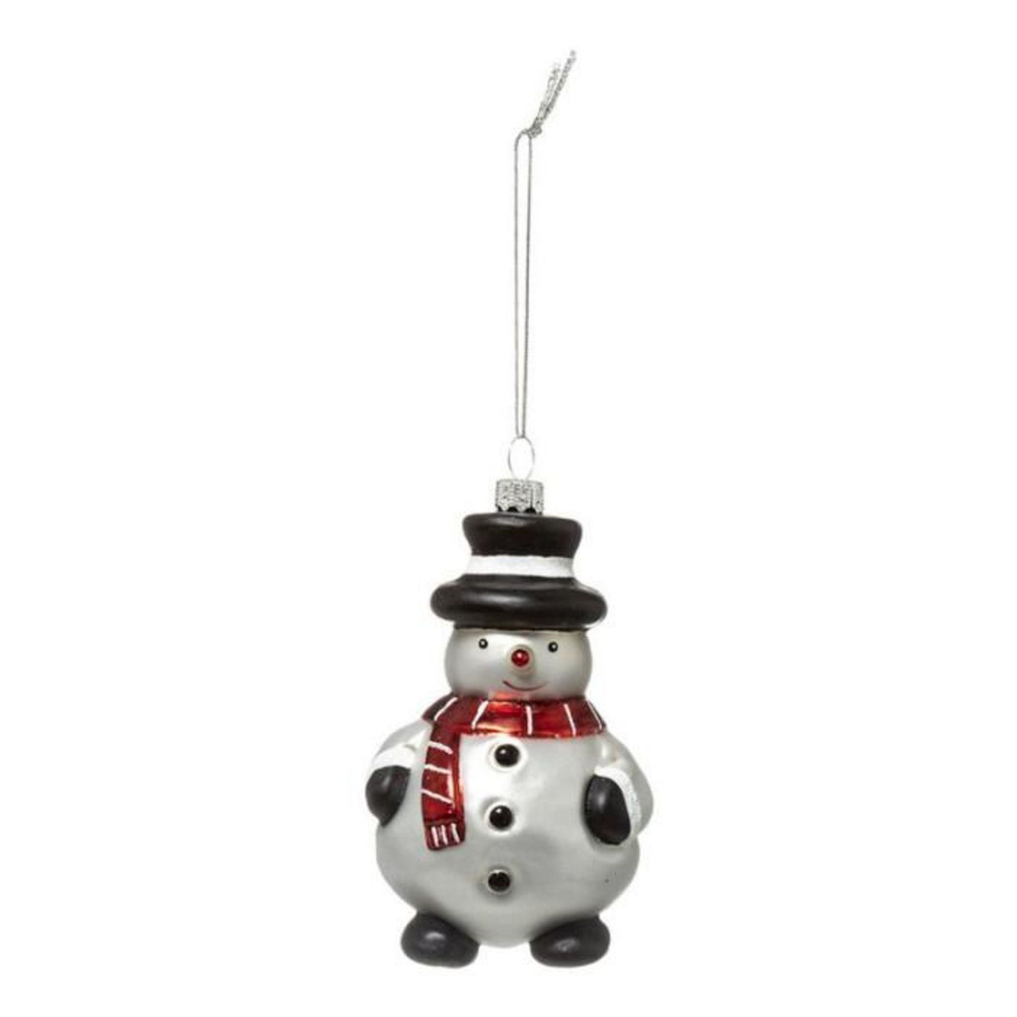 Informations Techniques : Dimensions : L. 6,5 x l. 6 x H. 10,8 cm Matière : Verre Spécificités : Pratique & Utile Sujet de Noël A Suspendre Design Bonhomme de Neige avec Chapeau Poids : 0,031 kg Couleur : Blanc