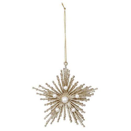 Informations Techniques : Dimensions : L. 12 x l. 2 x H. 12 cm Matière : Plastique Spécificités : Pratique & Utile Sujet de Noël A Suspendre Design Étoile Galaxy Avec Paillettes & Perles Poids : 0,023 kg Couleur : Or & Blanc