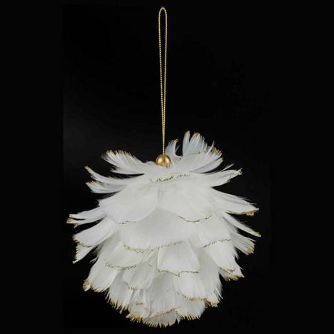 Informations Techniques : Dimensions : D. 15 cm Matière : Plumes Spécificités : Pratique & Utile Sujet de Noël A Suspendre Forme Boule Design Plume Avec Paillettes Couleur : Blanc