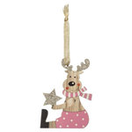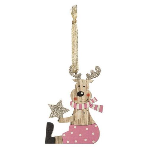 Informations Techniques : Dimensions : L. 7,5 x l. 1 x H. 10 cm Matières : Bois & Contreplaqué Spécificités : Pratique & Utile Sujet de Noël A Suspendre Design Renne Assis Avec Paillettes Poids : 0,008 kg Couleur : Rose & Naturel