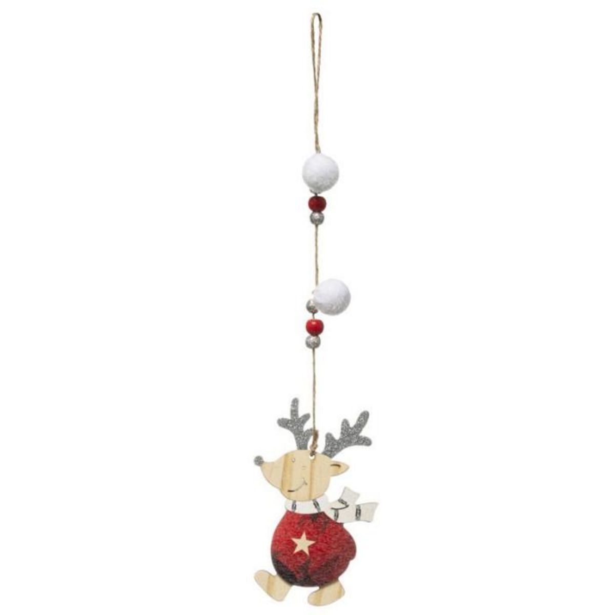 Informations Techniques : Dimensions : L. 7 x l. 0,5 x H. 35 cm Matière : Bois Spécificités : Pratique & Utile Sujet de Noël A Suspendre Design Renne avec Billes & Pompons Finition Paillettes Poids : 0,021 kg Couleur : Rouge & Beige