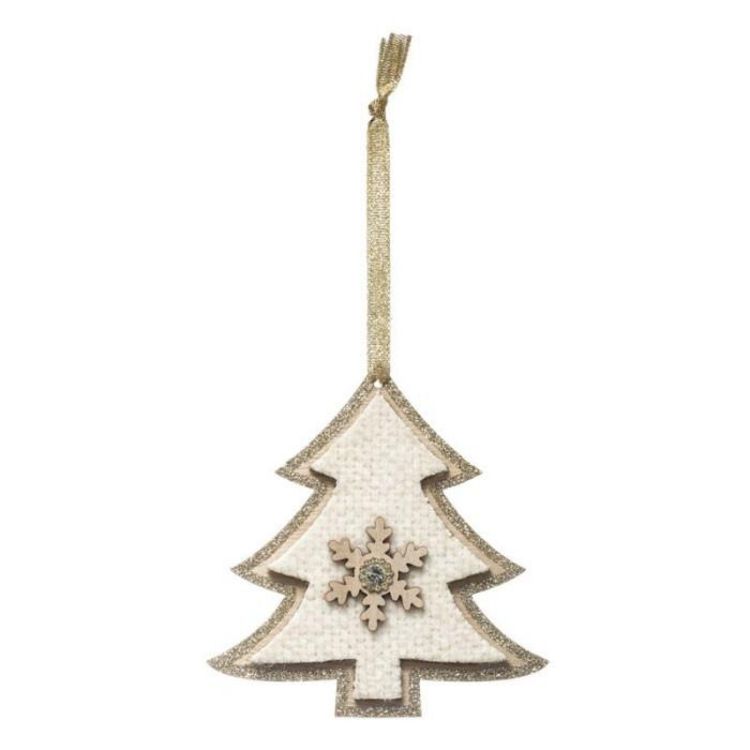 Informations Techniques : Dimensions : L. 11,5 x l. 1 x H. 12 cm Matières : Bois & Contreplaqué Spécificités : Pratique & Utile Sujet de Noël A Suspendre Design Sapin Finition Tissu Avec Paillettes Poids : 0,016 kg Couleur : Écru & Champagne