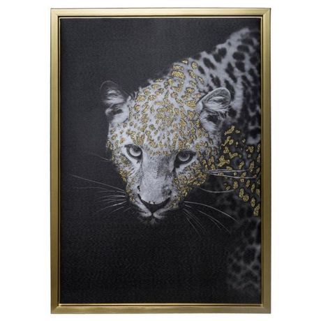 Informations Techniques : Dimensions : L. 50 x l. 3 x H. 70 cm Matière : Polyester, MDF & Polystyrène Spécificités : Pratique & Utile Tableau déco Forme Rectangulaire Design Léopard Poids : 1,124 kg Couleur : Noir, Blanc & Or