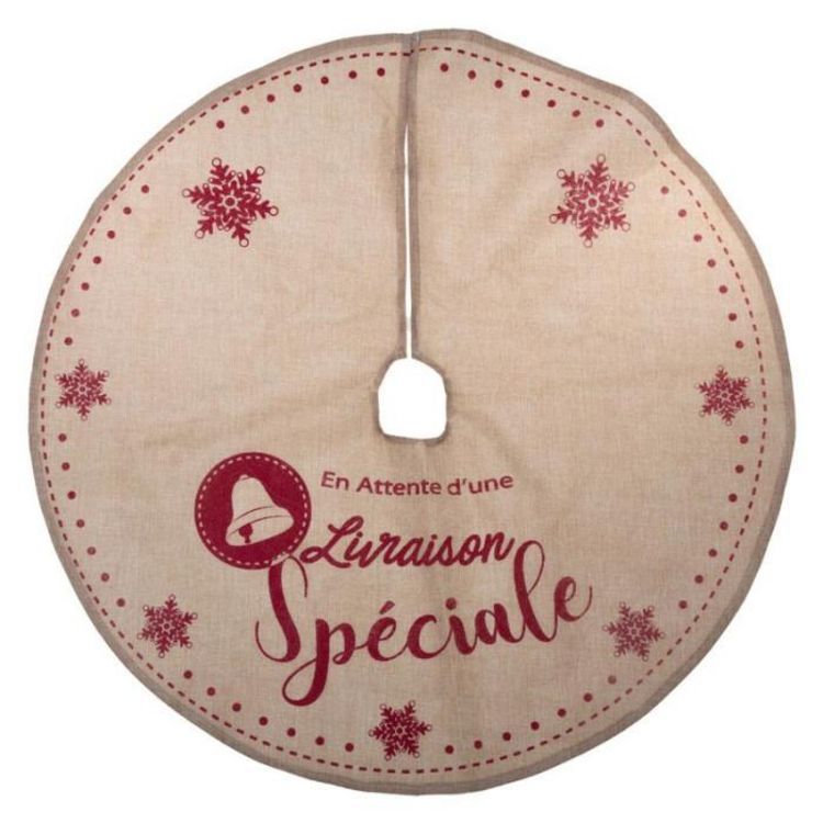 Informations Techniques : Dimensions : D. 90 cm Épaisseur : 2 cm Matière : Jute Végétale Spécificités : Pratique & Utile Tapis pour Sapin Imprimé Livraison spéciale Forme Ronde Poids : 0,01 kg Couleur : Naturel & Rouge