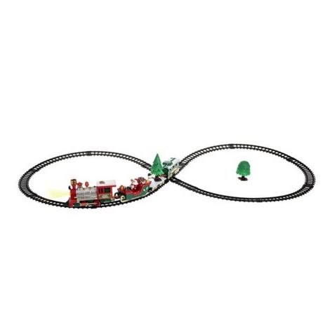 Informations Techniques : Dimensions : L. 39 x l. 5,5 x H. 30,5 cm Locomotive : L. 10,5 x l. 3,4 x H. 4,9 cm Wagons : L. 11,5 x l. 4,6 x H. 5 cm Traîneau : L. 11,5 x l. 4,8 x H. 7,5 cm Arbre : L. 4,5 x H. 5,5 cm Rails : L. 90,8 x l. 44 cm Circuit : L. 90,8 cm Matière : ABS Spécificités : Festif & É
