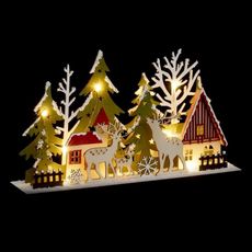 Informations Techniques : Dimensions : L. 30 x l. 6 x H. 17 cm Matière : MDF Spécificités : Pratique & Utile Village de Noël Fonctionnement à LED Ampoules : 13 LEDs de coloris Blanc Chaud Effet Lumière Fixe Fonctionne à Piles (2 x AAA non incluses) Poids : 0,14 kg Couleur : Multicolore