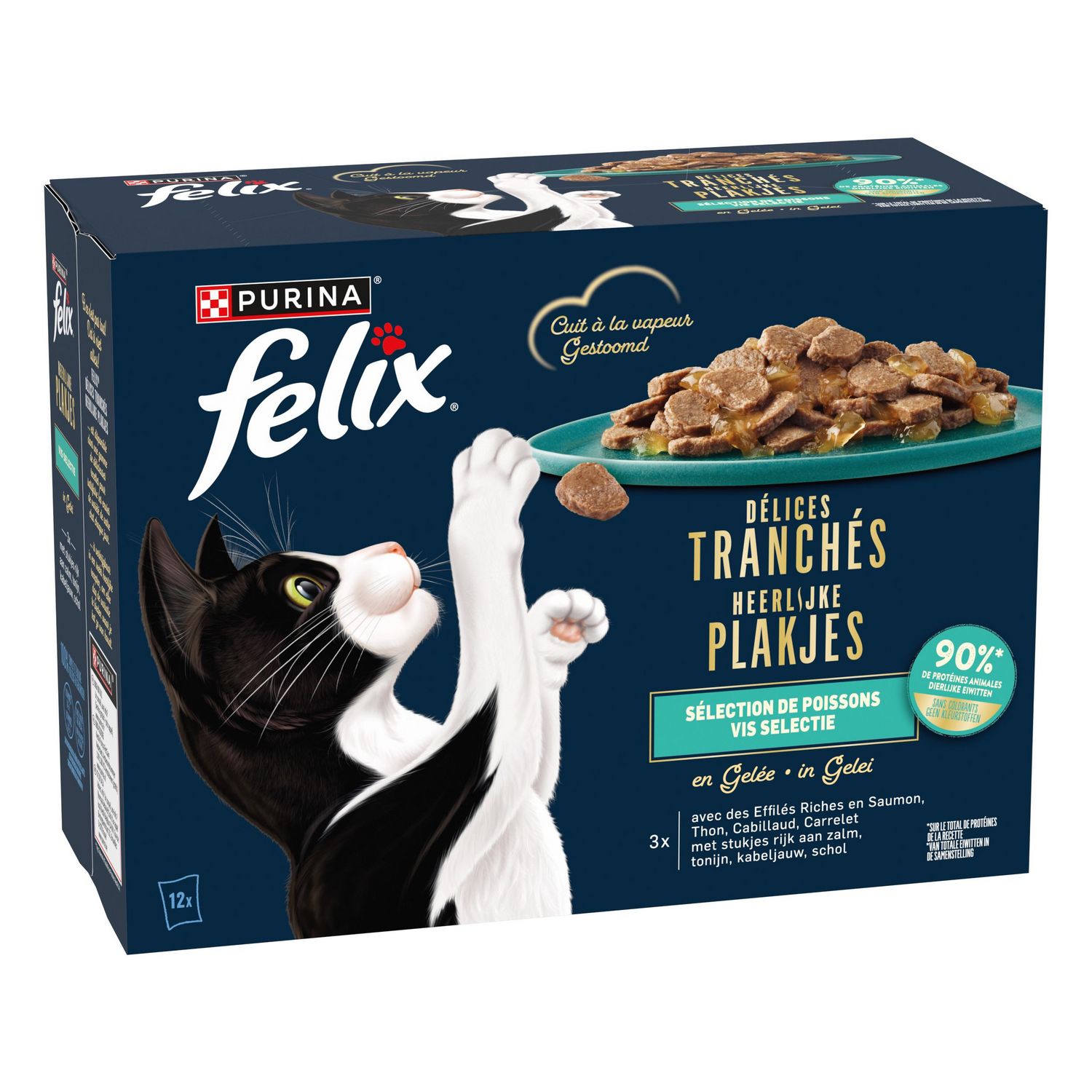 FELIX Délices Tranchés sont des tranches parfaitement cuites à la vapeur, riches en protéines et enrobées d'une délicieuse gelée que votre chat va dévorer ! De savoureux repas dont l'apparence, l'odeur et le goût si appétissants pourraient faire croire que vous les avez cuisinés vous-même !Chaque recette est cuite à la vapeur afin d'exploiter tout le potentiel de chaque ingrédient et libérer leurs délicieuses saveurs. Une texture unique de délicates et tendres tranches servies dans une gelée irrésistiblement savoureuse. Et ce n'est pas tout ! FELIX Délices Tranchés est disponible dans une gamme de délicieuses recettes pour satisfaire les envies de variété de votre chat chaque jour.FELIX, tellement irrésistible !FELIX Délices Tranchés sont des tranches parfaitement cuites à la vapeur, riches en protéines et enrobées d'une délicieuse gelée que votre chat va dévorer !De savoureux repas dont l'apparence, l'odeur et le goût si appétissants pourraient faire croire que vous les avez cuisinés vous-même !Chaque recette est cuite à la vapeur afin d'exploiter tout le potentiel de chaque ingrédient et libérer leurs délicieuses saveurs. Une texture unique de délicates et tendres tranches servies dans une gelée irrésistiblement savoureuse. Et ce n'est pas tout ! FELIX Délices Tranchés est disponible dans une gamme de délicieuses recettes pour satisfaire les envies de variété de votre chat chaque jour.FELIX, tellement irrésistible !