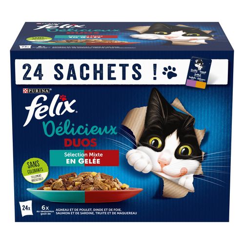 Sachets repas délicieux duos sélection mixte en gelée pour chat