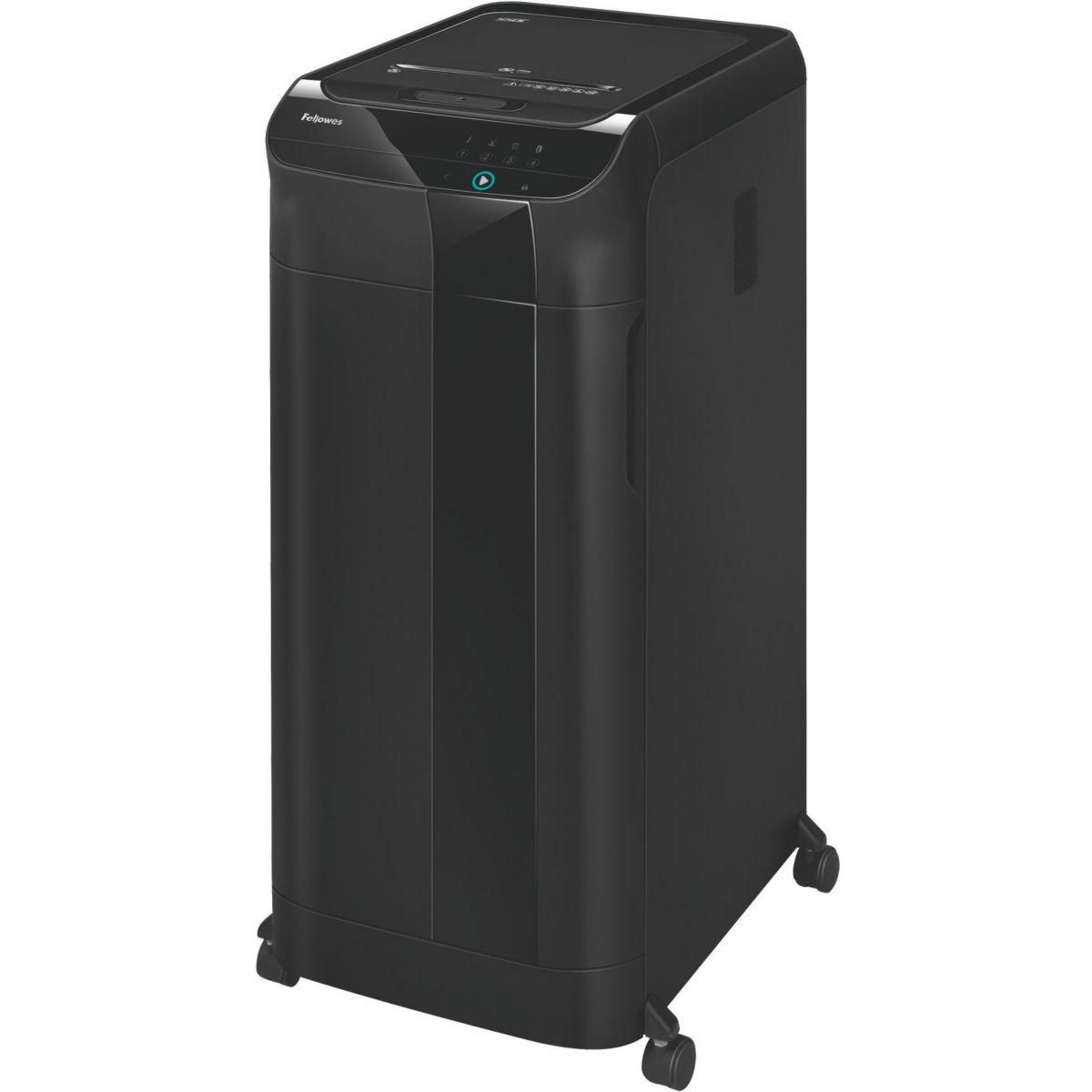 | Avantages | - Détruit en toute autonomie jusqu'à 550 feuilles (en 13min) et jusqu'à 14 feuilles (70gsm) par insertion manuelle - Détruit des documents en particules de 4x38mm (niveau de sécurité DIN P-4) - Corbeille extractible de 83 litres pour un vidage facile | |