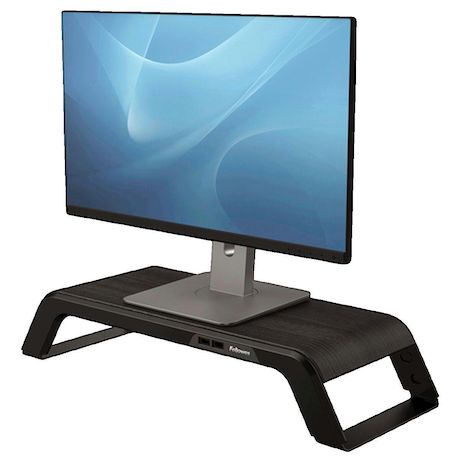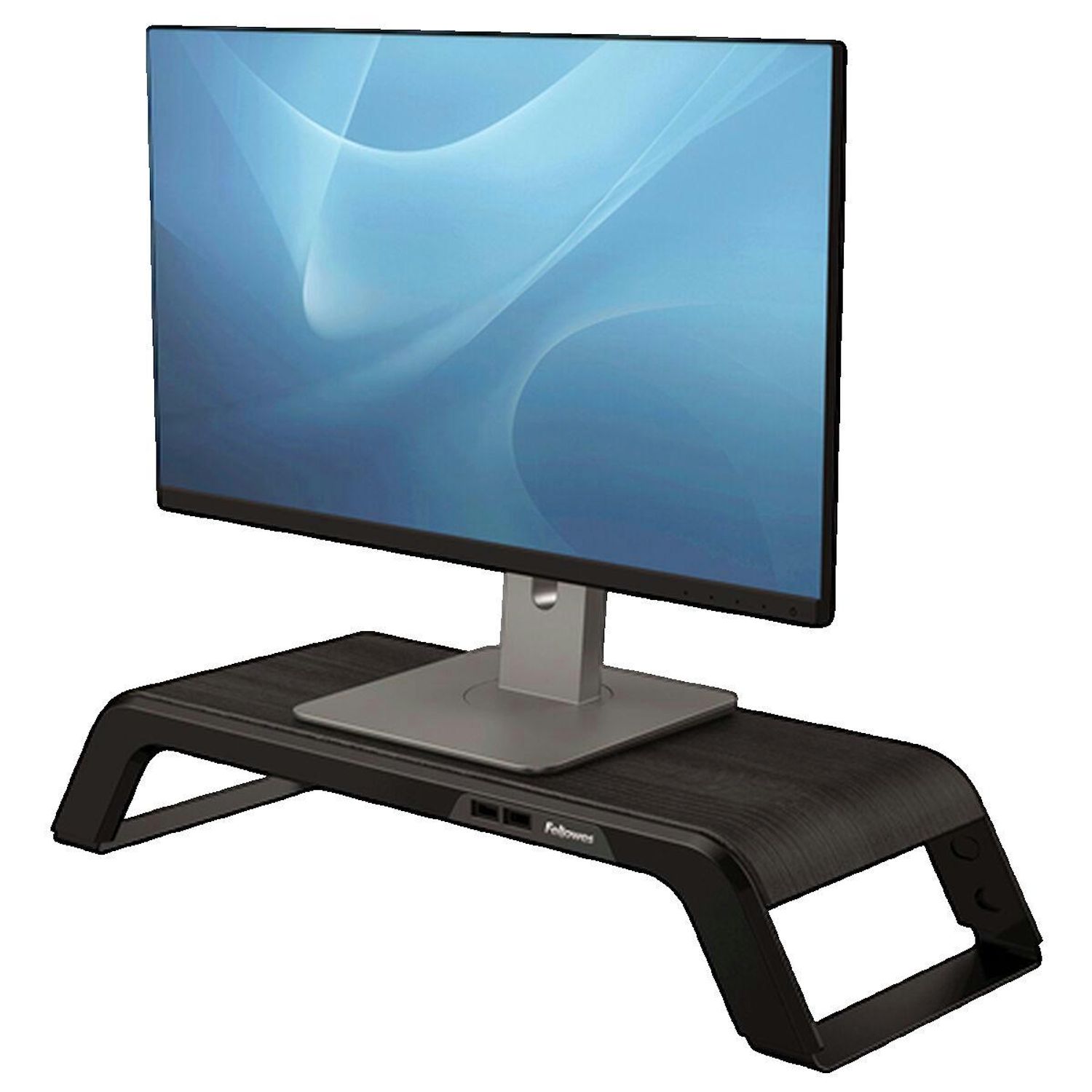 Support d'écran Fellowes Hana en aluminium et bois avec ports USB et hauteur réglable