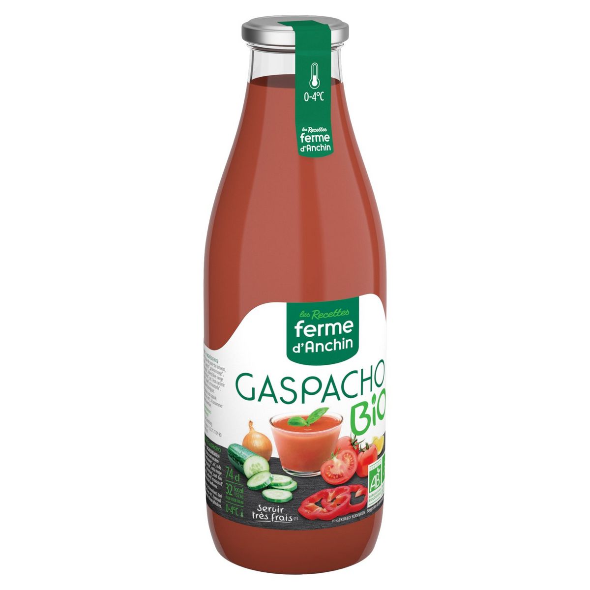 jus de tomates* à base de purée de tomates,eau,concombre*,oignon*,poivron rouge*,vinaigre de vin rouge*,huile d'olive vierge extra*,ail*,jus de citron*,sel,*Issus de l'agriculture biologique.