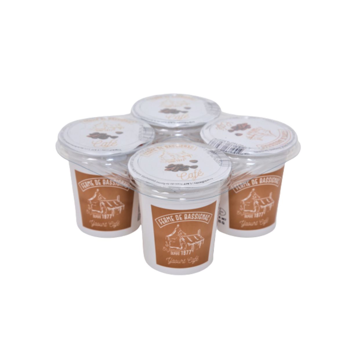 YAOURT AROMATISE CAFE FERME DE BASSIGNAC, AU LAIT FRAIS DE LA FERME, LONGUE DLC, PRODUIT DU TERROIR (AUVERGNE.CANTAL) UNE ONCTUOSITÉ UNIQUE !