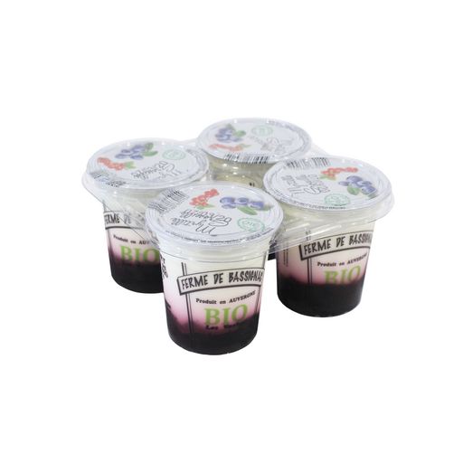 YAOURT BICOUCHE MYRTILLE/GROSEILLE BIO FERME DE BASSIGNAC, AU LAIT FRAIS DE LA FERME, LONGUE DLC, PRODUIT DU TERROIR (AUVERGNE.CANTAL) UNE ONCTUOSITÉ UNIQUE !