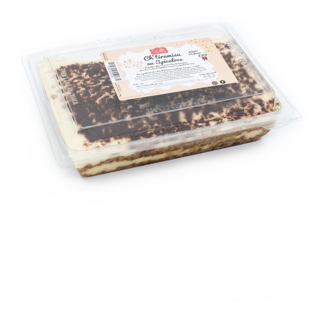 Mascarpone (lait entier et crème fraiche pasteurisés, présure, ferments lactiques), 25% de spéculoos (farine de blé, sucre, huile de colza, sirop de sucre candi, concentré de beurre sans lactose, poudre à lever (carbonate acide de sodium), sel, canelle), blancs d'oeufs, sucre, jaune d'oeuf, vanille de Madagascar.