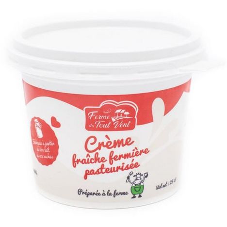 Une vraie crème fraîche de ferme au bon goût et à la texture naturellement ferme. Cette crème est fabriquée à la Ferme du Tout Vent avec le bon lait de leurs vaches. Elle est idéale pour toutes vos recettes sucrées et salées. La Ferme du Tout Vent, basée à Beaufort dans le Nord, est une exploitation familiale depuis 4 générations. Sur la ferme,les trois frères, Jean-Baptiste, Etienne et Matthieu Gorisse, élevent leurs vaches dans le plus grand soin, s'occupent de la traite ainsi que de la transformation des produits laitiers frais ( beurre, yaourt, fromage blanc, crème, ... ).