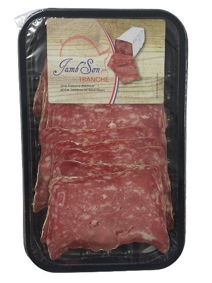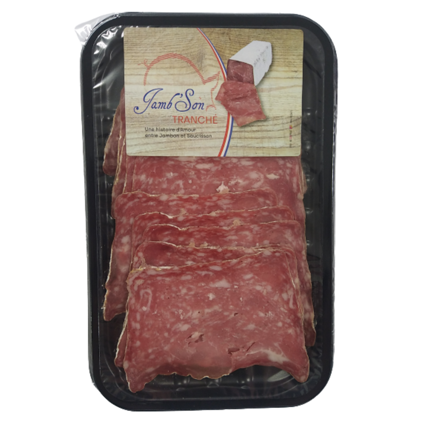 Ingrédients : Jambon de porc origine FRANCE, viande de porc origine FRANCE, sel, lactose (LAIT), dextrose, épices, plantes aromatiques, saccharose, conservateur: nitrate de potassium, arômes naturels, marc de Bourgogne, ferments