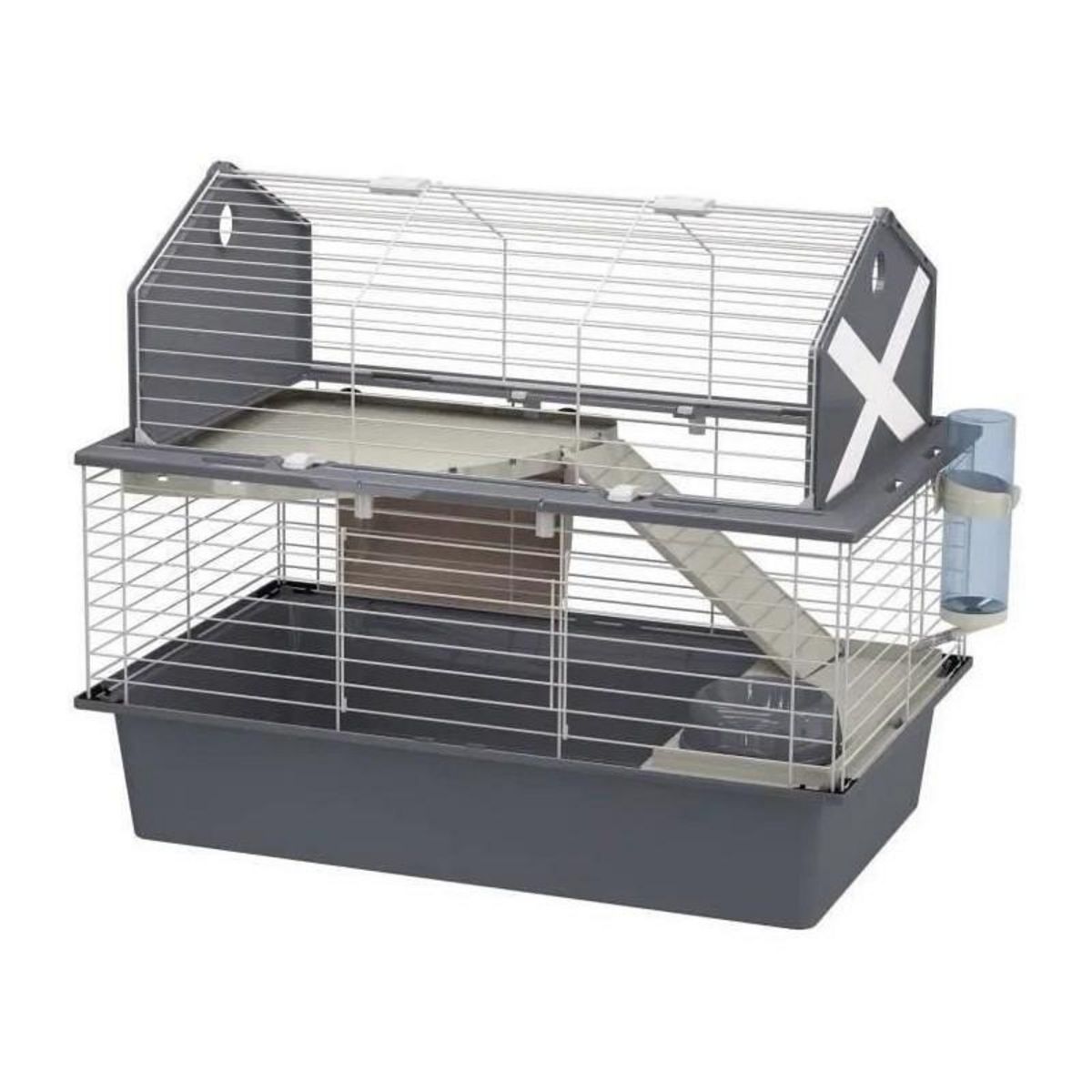 FERPLAST Cage Barn 80 - En plastique et métal - 78 x 48 x 65 cm - Gris - Pour lapin.