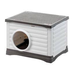 Fabriquée en résine thermoplastique robuste, un matériau résistant aux chocs et aux rayons UV, la niche d'extérieur Petvilla pour chiens et chats est idéale pour toutes les saisons. Grâce au grand volume interne, elle assure confort et espace a votre animal. La construction particuliere du fond prés