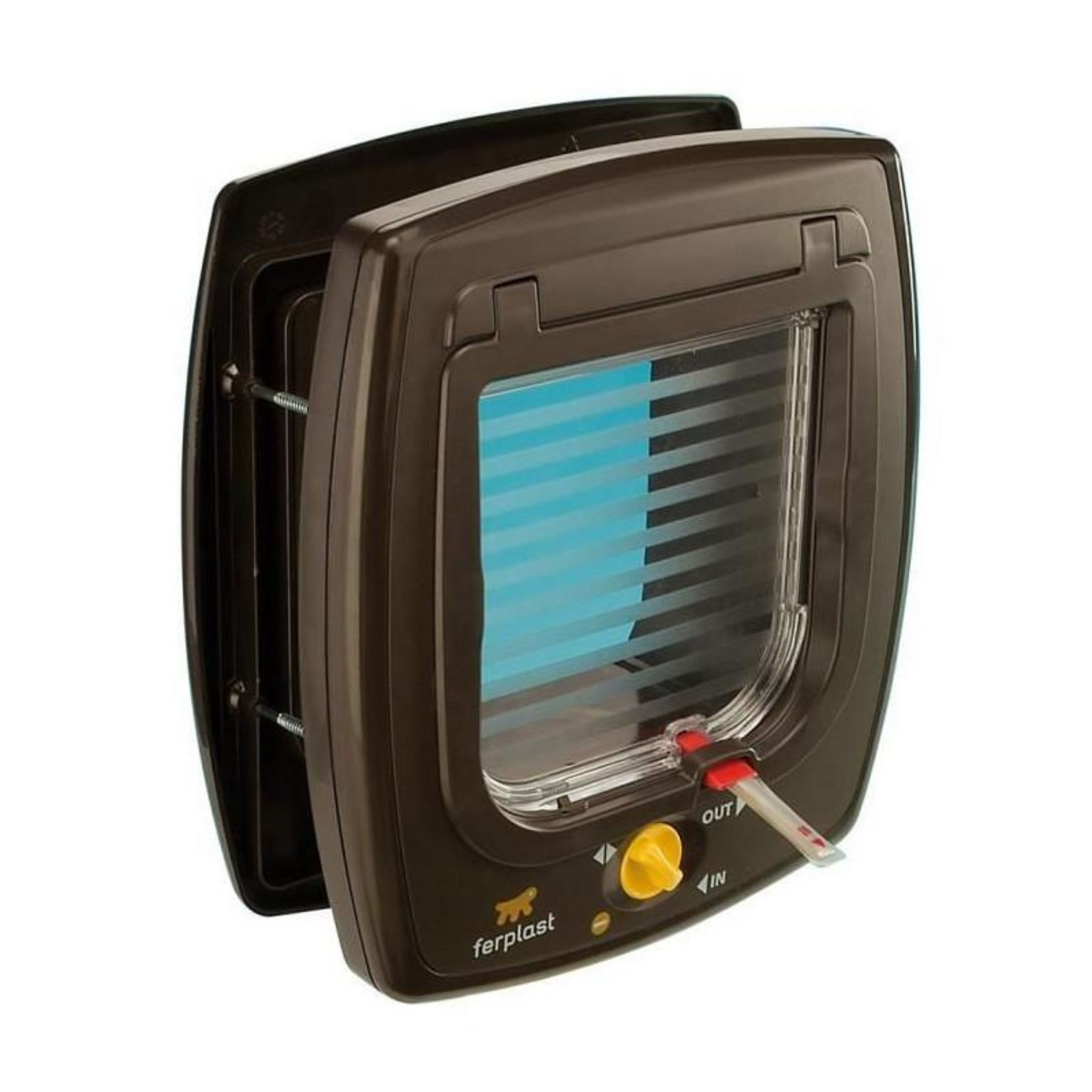 Chatiere Swing 7 a installer sur n'importe quel support. Systeme 'Wind stopper' pour éviter les courants d'air. Indicateur de passage de l'animal et ouverture automatique grâce a l'aimant magnétique sur le collier. Systeme de verrouillage 4 voies : ouverte, fermée, entrée uniquement, sortie uniquement. Livrée avec tunnel.