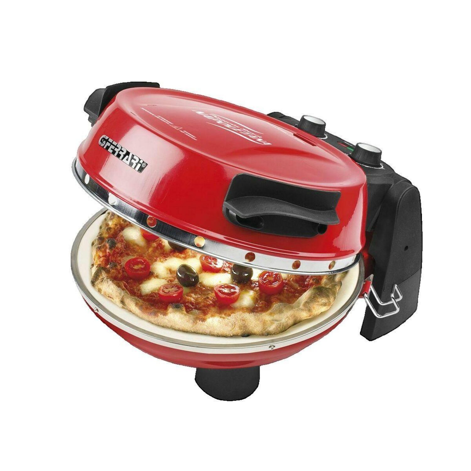Découvrez le four à pizza G3 Ferrari Pizzeria Snack Napoletana, un appareil élégant et performant conçu pour la cuisine domestique. Avec une puissance de 1200 W, il atteint une température maximale de 400 °C, permettant de cuire une pizza en seulement 5 minutes. Son design compact en noir et rouge s