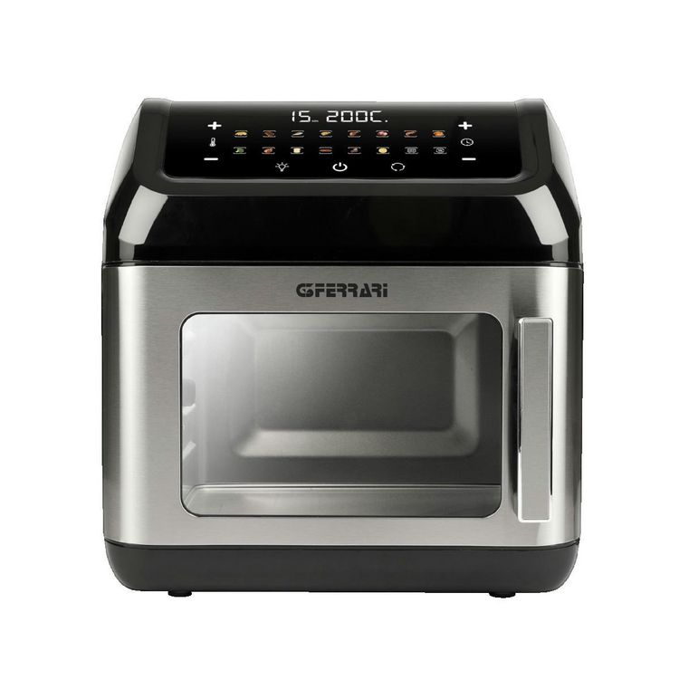 La friteuse G3 Ferrari Friggisano Evo est un appareil multifonction conçu pour une cuisson saine et économique en énergie. Dotée d'une technologie avancée de circulation rapide de l'air, elle permet de préparer des frites croustillantes avec 80% de matières grasses en moins. Elle dispose d'un affichage numérique avec 16 programmes prédéfinis et peut également être utilisée comme mini four. Sa capacité de 13 litres et son design élégant en inox et noir s'intègrent parfaitement dans une cuisine moderne. Puissance de 1700 W, minuterie jusqu'à 90 minutes, température réglable de 30 °C à 200 °C, plateau antiadhésif et pieds antidérapants facilitent son utilisation et son nettoyage.