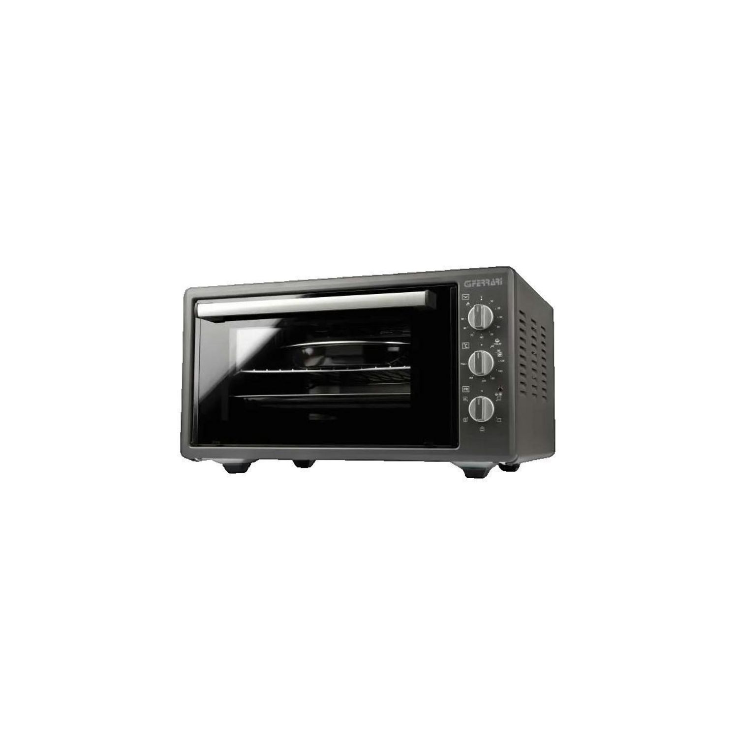 Découvrez le mini four électrique G3 Ferrari Rosto Titanium 47, doté d'une capacité de 45 litres, idéal pour la cuisson simultanée de deux plats. Il atteint une température maximale de 280°C grâce à son thermostat réglable et son puissant thermo-circulateur. Ses parois intérieures émaillées facilite