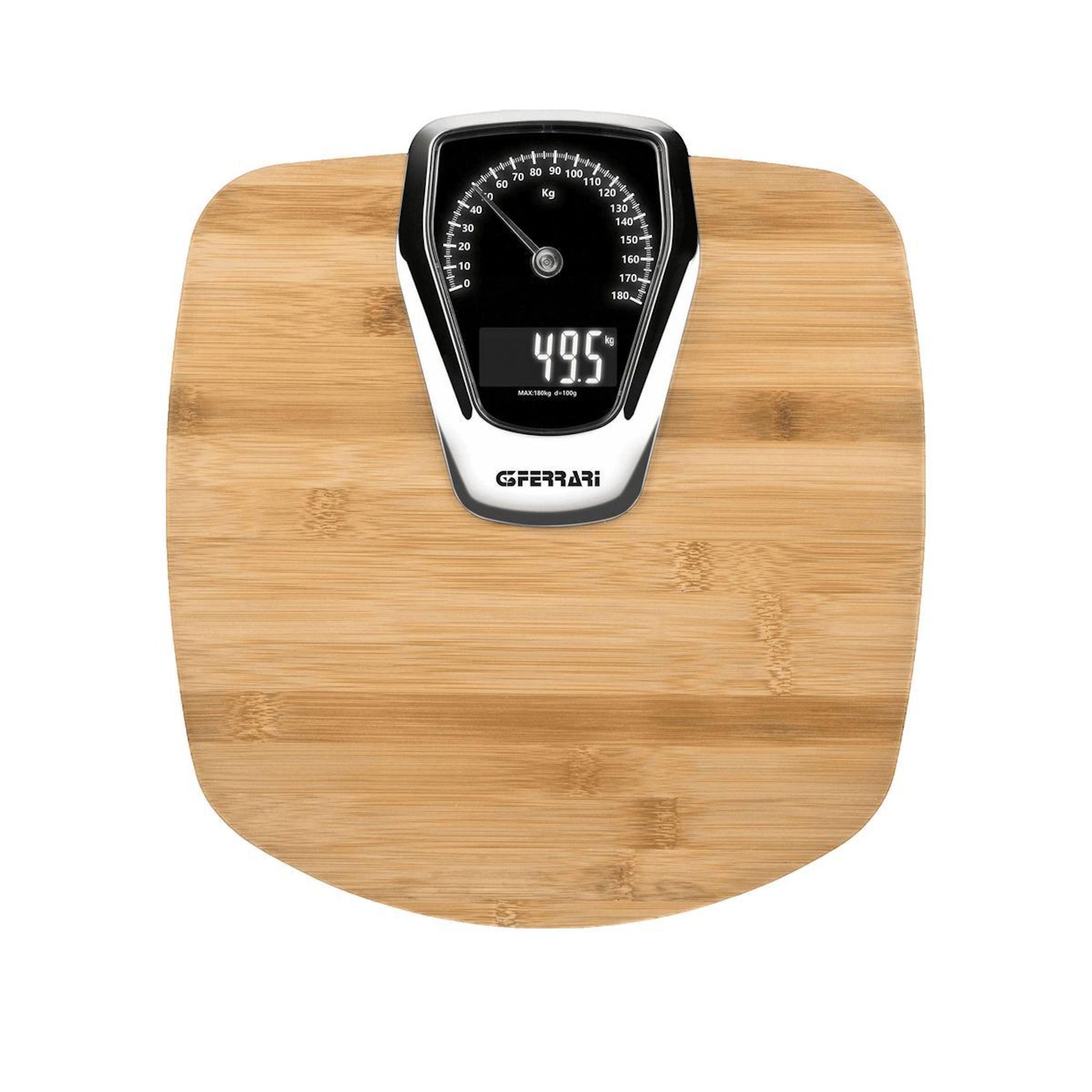 La balance g3ferrari Formula Elegance est un pèse-personne électronique alliant technologie moderne et design esthétique. Elle dispose d'un double affichage, analogique et numérique, facilitant la lecture du poids. Sa plateforme est en bois de bambou et son boîtier en verre, apportant une touche d'é