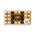 ROCHER: chocolat au LAIT 30% (sucre, beurre de cacao, pâte de cacao, LAIT écrémé en poudre, BEURRE concentré, émulsifiants : lécithines [SOJA] ; vanilline), NOISETTES 28,5%, sucre, huile de palme, farine de FROMENT, LACTOSERUM en poudre, cacao maigre, émulsifiants : lécithines [SOJA] ; poudre à lever : carbonate acide de sodium ; sel, vanilline. Le chocolat utilisé est un chocolat pur beurre de cacao. RAFFAELLO: Ingrédients : noix de coco râpée 25,5%, graisses végétales (palme, karité), sucre, AMANDE 8%, LAIT écrémé en poudre, LACTOSERUM en poudre, farine de FROMENT, amidon, arômes, émulsifiants (lécithines [SOJA]), poudres à lever (carbonate acide de sodium), sel. RONDNOIR: chocolat noir 40,5% (sucre, pâte de cacao, beurre de cacao, émulsifiants : lécithines [SOJA] ; vanilline), sucre, huile de palme, farine de FROMENT, cacao maigre 5,5%, LACTOSERUM en poudre, LAIT écrémé en poudre, amidon de FROMENT, huile de tournesol, chocolat supérieur au LAIT (sucre, beurre de cacao, LAIT en poudre, pâte de cacao, émulsifiants : lécithines [SOJA] ; vanilline), beurre de cacao, émulsifiants : lécithines [SOJA] ; protéines de LAIT, agent d'enrobage : gomme arabique ; pâte de cacao, poudres à lever (carbonate acide de sodium, carbonate acide d'ammonium), sel, vanilline.