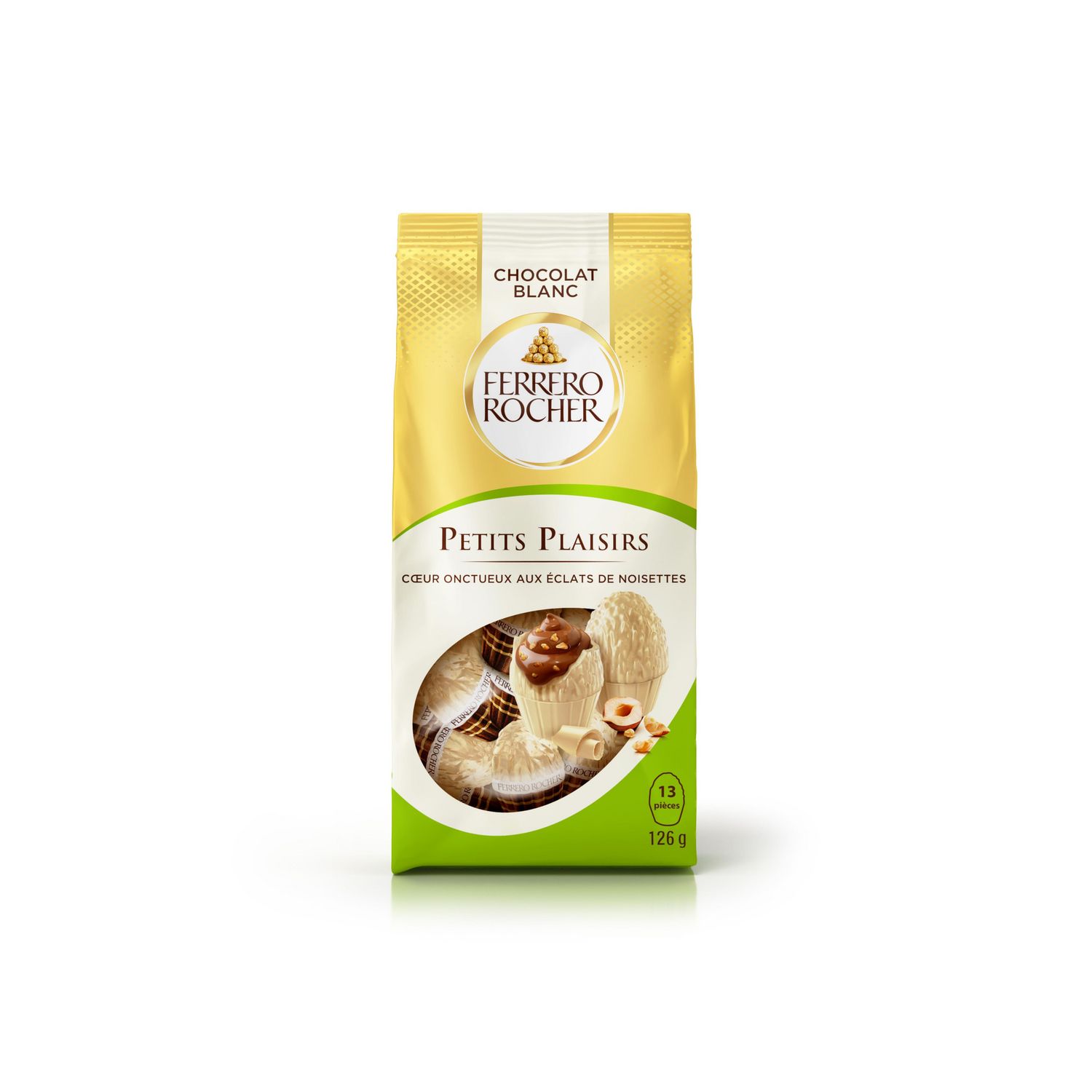 Ferrero Rocher Petits Plaisirs, de nouveaux petits œufs avec un cœur onctueux aux éclats de noisettes croquants, enveloppé d'une délicieuse coque de chocolat.