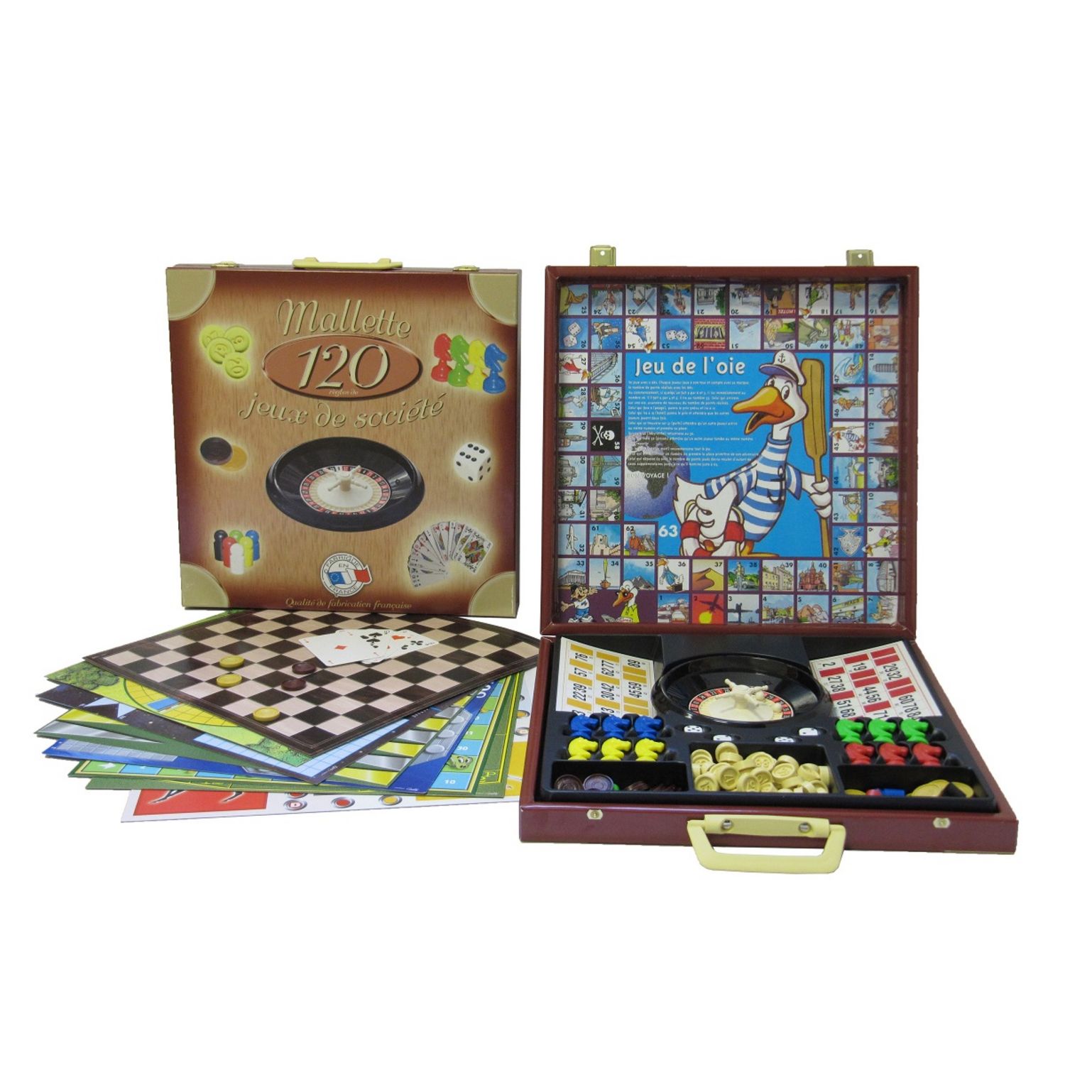 Une mallette de 120 jeux avec poignée et charnières dans laquelle vous retrouverez les principaux jeux traditionnels tels que le jeu de dames, le jeu des chevaux, le jeu de l’oie ainsi qu'une roulette pour jouer comme au casino.