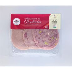 Roulade aux pistaches 33% : Viande de porc* 80%, eau, PISTACHES 2%, sel, sirop de glucose, stabilisants :