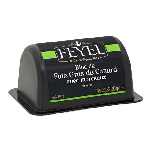 Bloc de foie gras de canard 30% morceaux en barquette 200g