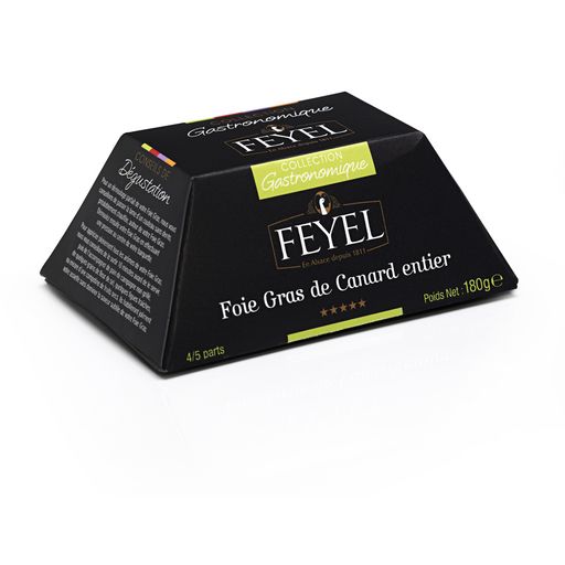 FOIE GRAS DE CANARD, SEL, COGNAC, SUCRE, EPICES. CONSERVATEURS (ASCORBATE DE SODIUM, NITRITE DE SODIUM).