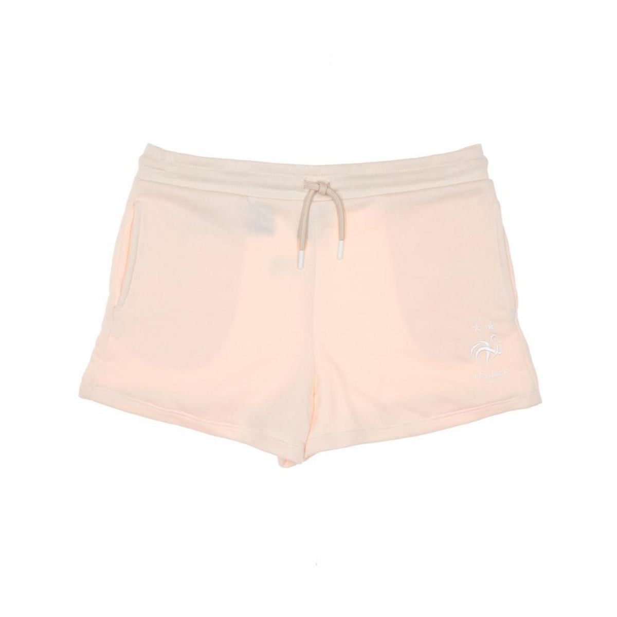 Optez pour le short de l'équipe de France ! Couleur : Rose Taille élastique ajustable par cordon de serrage Poches latérales Ecusson de la Fédération Française de Football orné de deux étoiles brodé sur la cuisse droite Cordon de serrage externe 100% coton