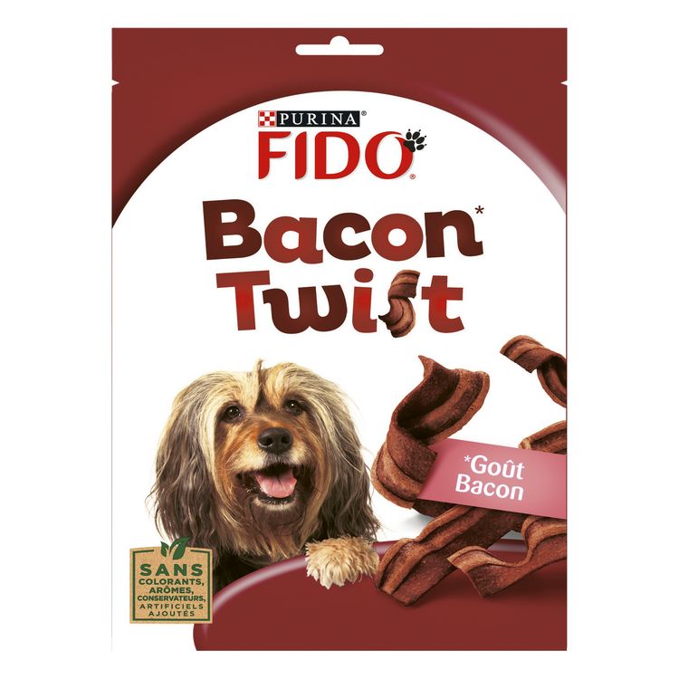 Fido Bacon Twist, une délicieuse friandise au goût bacon dont votre chien raffolera à tout moment de la journée. Des antioxydants pour l'aider à maintenir ses défenses naturelles. Des acides gras Oméga 3 et 6 pour l'aider à maintenir une peau saine et un poil brillant. Enrichie en vitamines B pour l'aider à maintenir son énergie. Faible teneur en matières grasses. Laissez-vous tenter par nos autres friandises FIDO Pour plus d'informations sur les produits FIDO, rendez-vous sur www.purina-fido.fr
