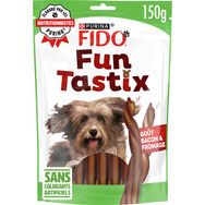 Funtastix, de savoureux bâtonnets torsadés au goût bacon et fromage dont votre chien raffolera à tout moment de la journée. FIDO S'ENGAGE. Avec les friandises FIDO, offrez à votre chien de savoureuses friandises élaborées avec des ingrédients de qualité soigneusement sélectionnés pour le plus grand plaisir de votre chien.