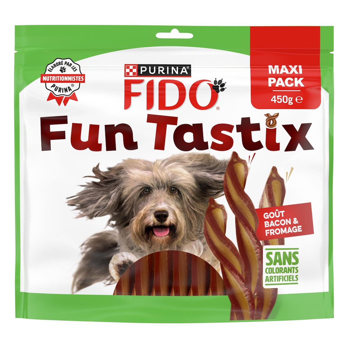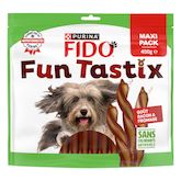 Funtastix, de savoureux bâtonnets torsadés au goût bacon et fromage dont votre chien raffolera à tout moment de la journée. FIDO S'ENGAGE. Avec les friandises FIDO, offrez à votre chien de savoureuses friandises élaborées avec des ingrédients de qualité soigneusement sélectionnés pour le plus grand plaisir de votre chien.