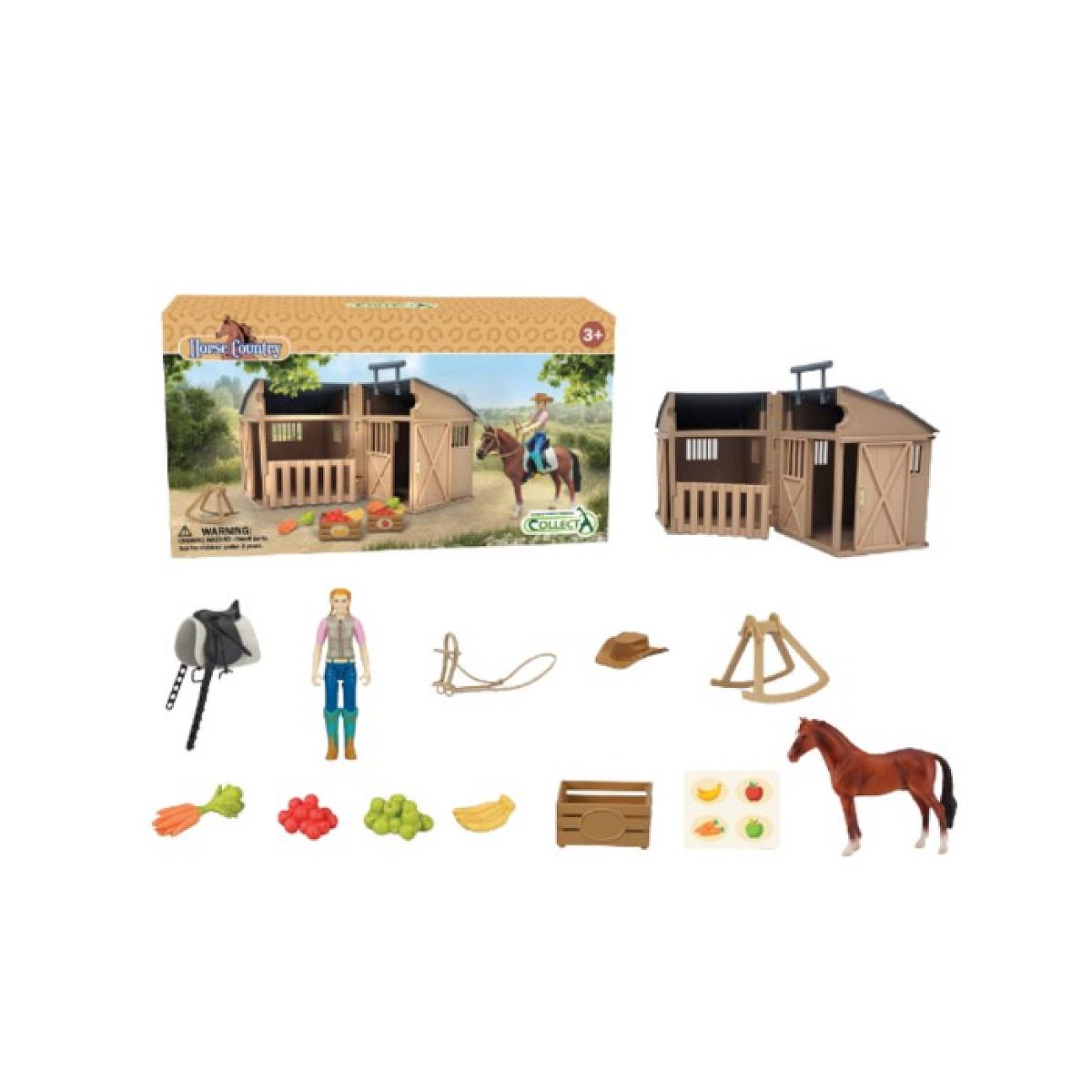 Collecta Gift Set / Chevaux: CAVALIÈRE et ACCESSOIRES avec CHEVAL ET STABLE, en boîte, 3+