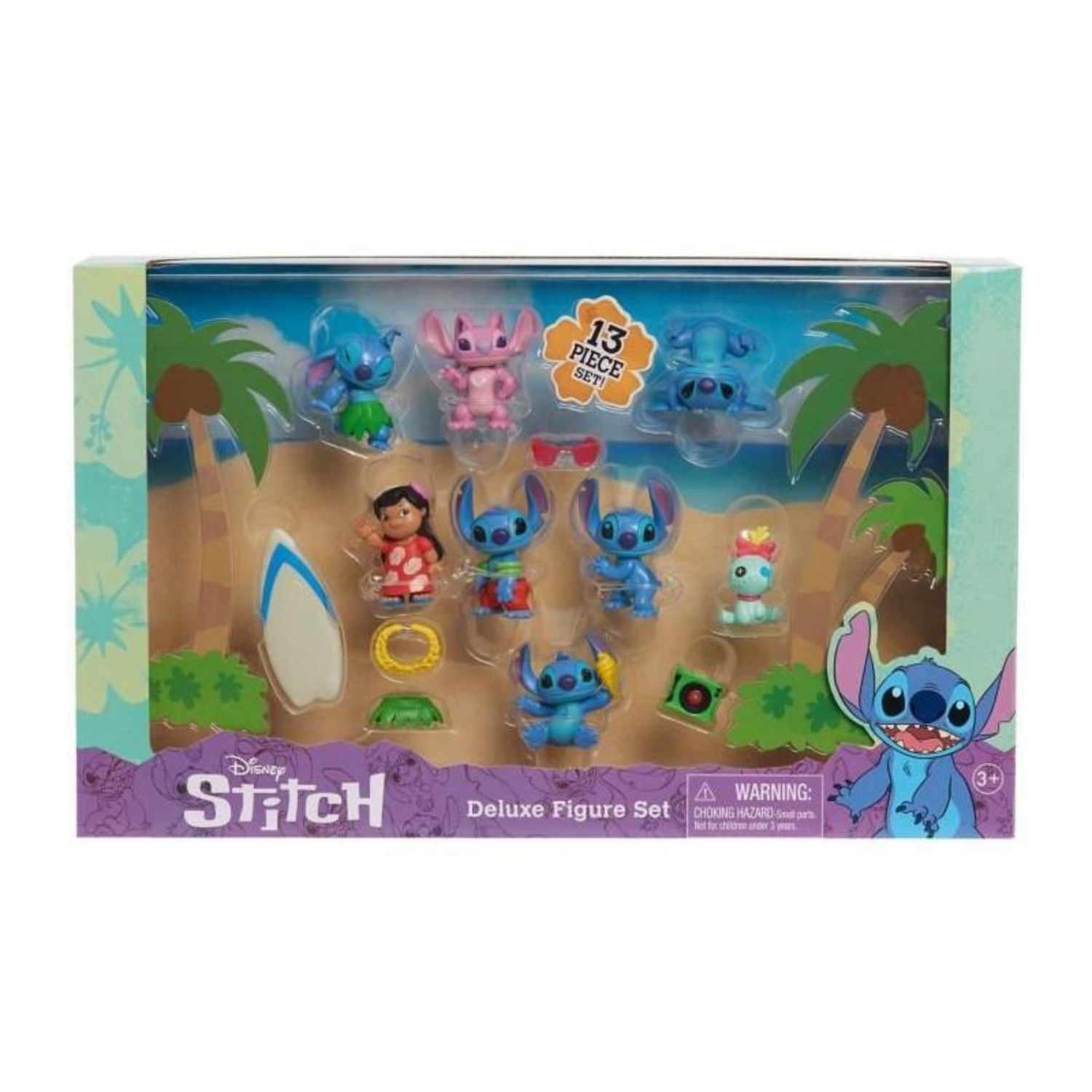 Figurines et accessoires - LICENCE /STITCH - Coffret Deluxe - 13 figurines et accessoires, Stitch dans 5 poses, planche de surf