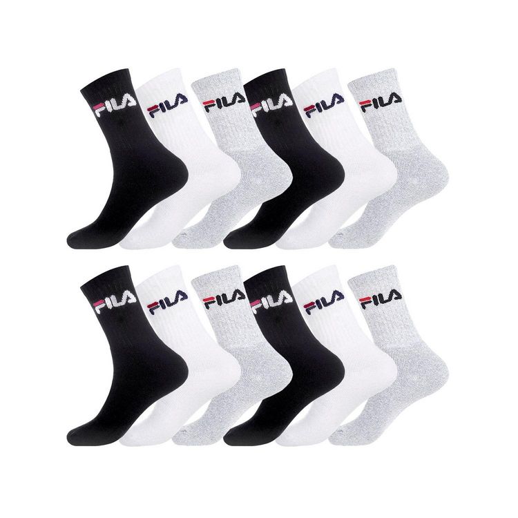 Optez pour ce superbe lot de 12 paires de tennis assorties de la marque Fila. Vous allez retrouver des chaussettes blanches, grises et noires ! Pour faire du sport, il n'y a pas mieux que Fila ! C'est l'occasion ou jamais de vous offrir des chaussettes toutes neuves.
