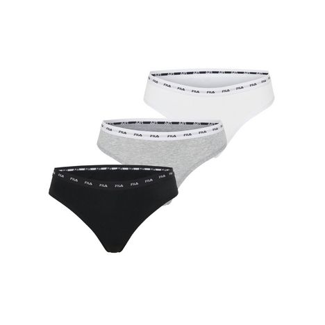 Optez pour le tout nouveau lot de 3 string coton pour femme ! Fila vous propose une nouvelle fois des sous-vêtements de qualité en coloris Noir, Gris et Blanc ! Les string coton Fila vous donneront style et confort dans le même sous-vêtement. Sur la ceinture des strings vous retrouverez le logo de la marque Fila.