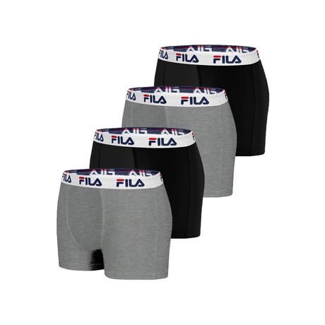 Rien de mieux qu'un lot de 4 boxers Fila pour avoir du style 4 jours de suite dans la semaine ! La marque propose ce lot avec 3 boxers noir et un boxer gris. On retrouve alors des coloris sobre qui donne du style en toute situation.