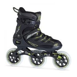 Platine en alu série 6000 extrudée 2 arches - 3 roues. Cuff haut. Chaussure Fila Air Flow PRO, rembourrage préformé. Fermeture lacets, boucle et strap coup de pied. Roues Fila 110mm / 84A. Roulements ABEC 9. Axes 8mm, entretoises alu. PAS de frein